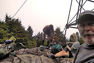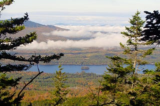 I'm a lone hiker, on a mountain in Maine, safely tucked inside a shelter, with the world beyond its rectangular opening draped in a heavy fog, while the…