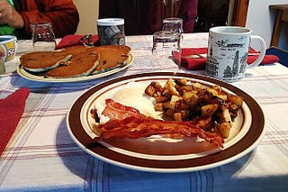 Lying in our sleeping bags, nearly asleep, we hear footsteps approaching the lean-to.....“Anyone want a hamburger?” We reach for our headlamps and…